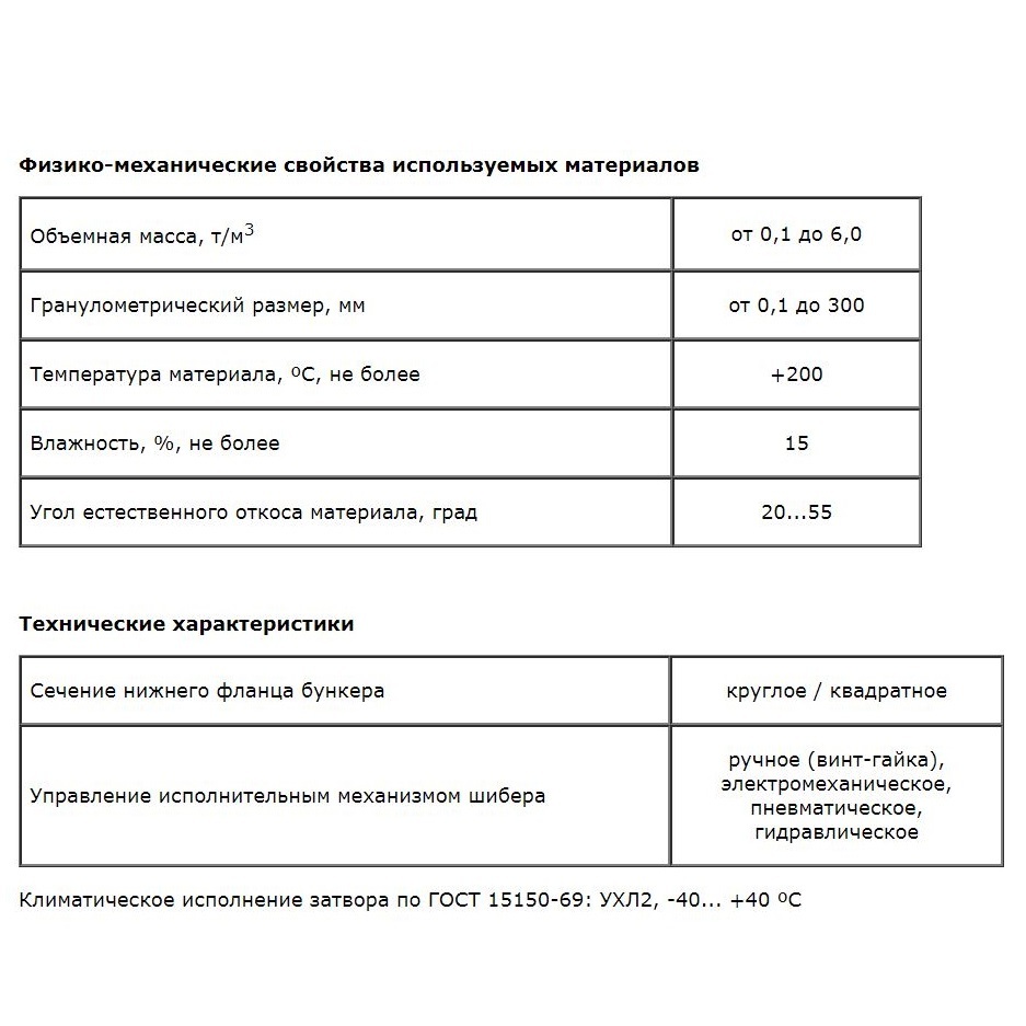 Затворы применяются для перекрытия потока сыпучих материалов, в составе с расходными и весовыми бункерами.
