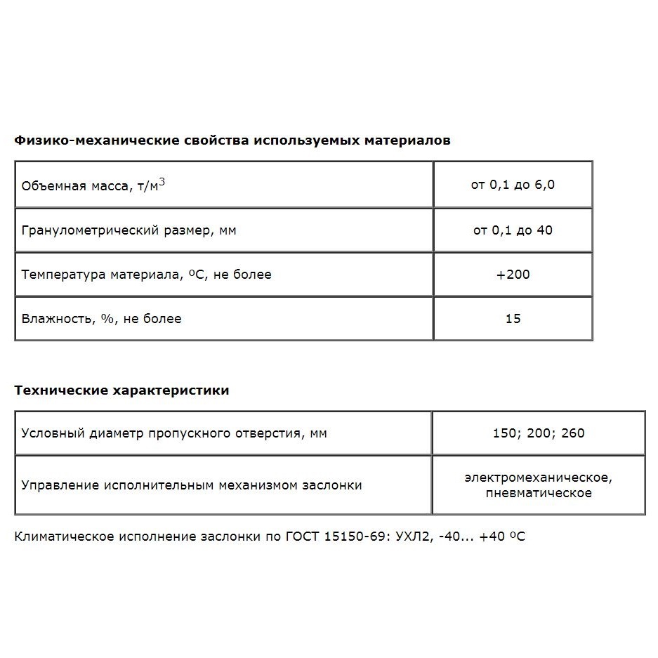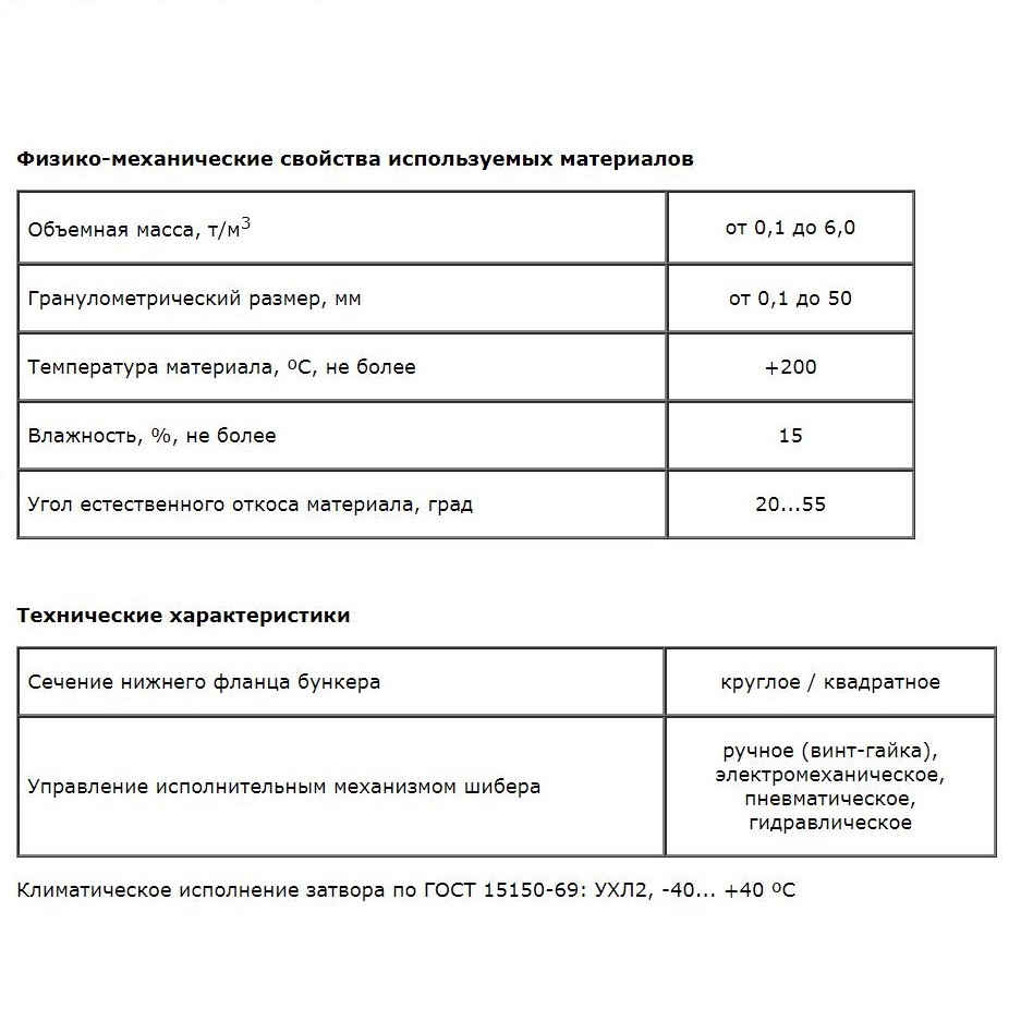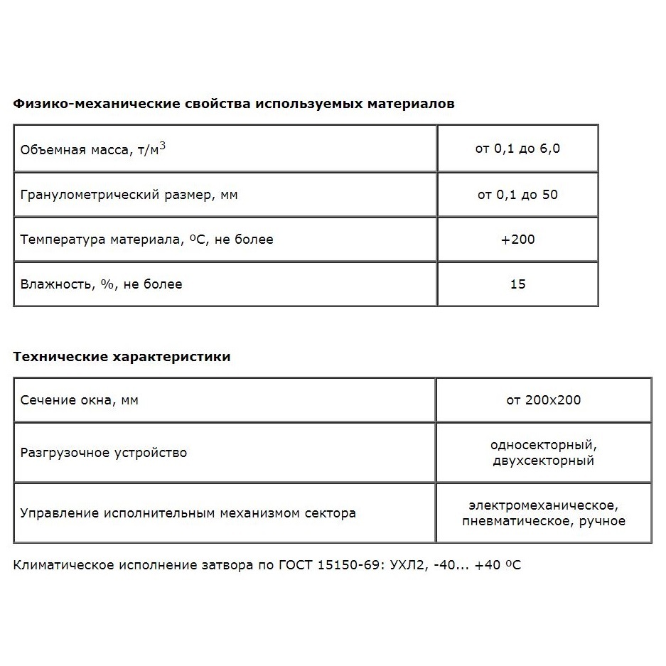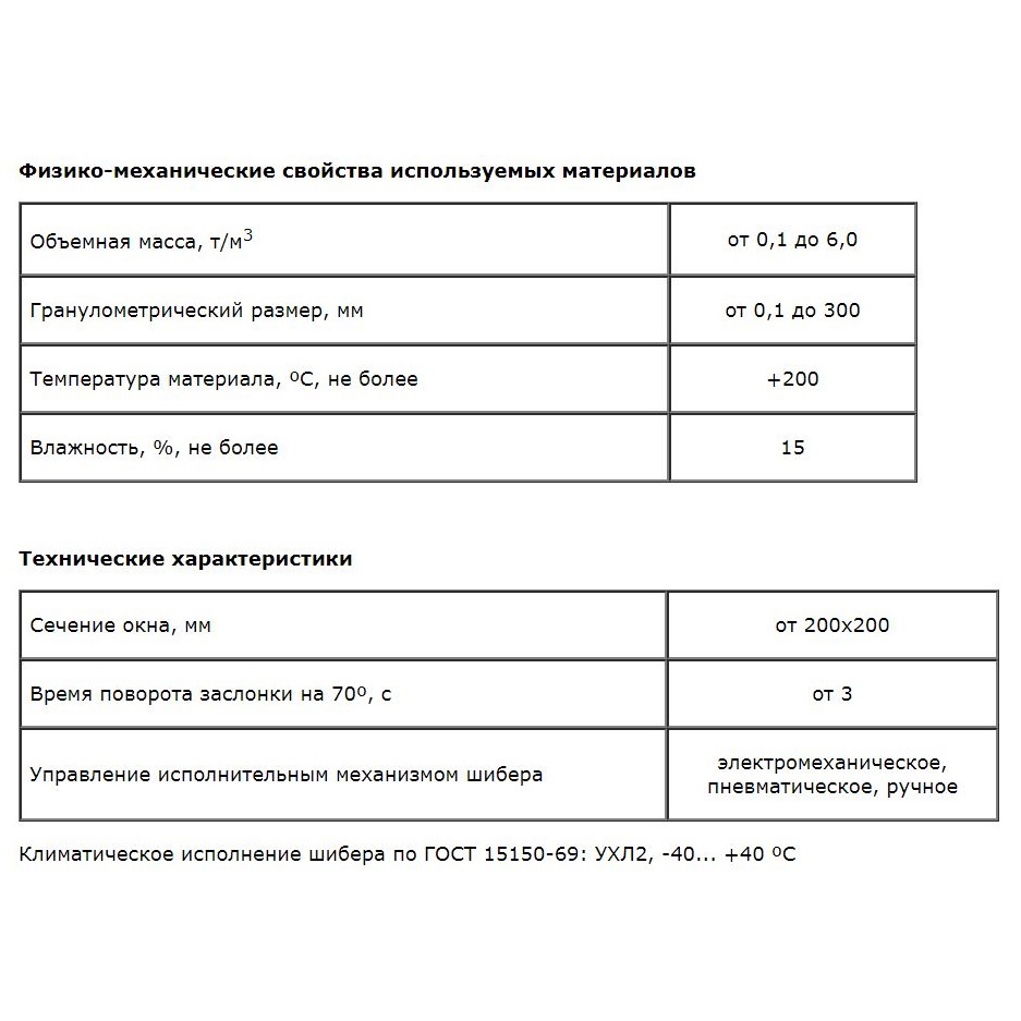 Затворы шиберные предназначены для работы с сыпучими материалами фракции до 50 мм.